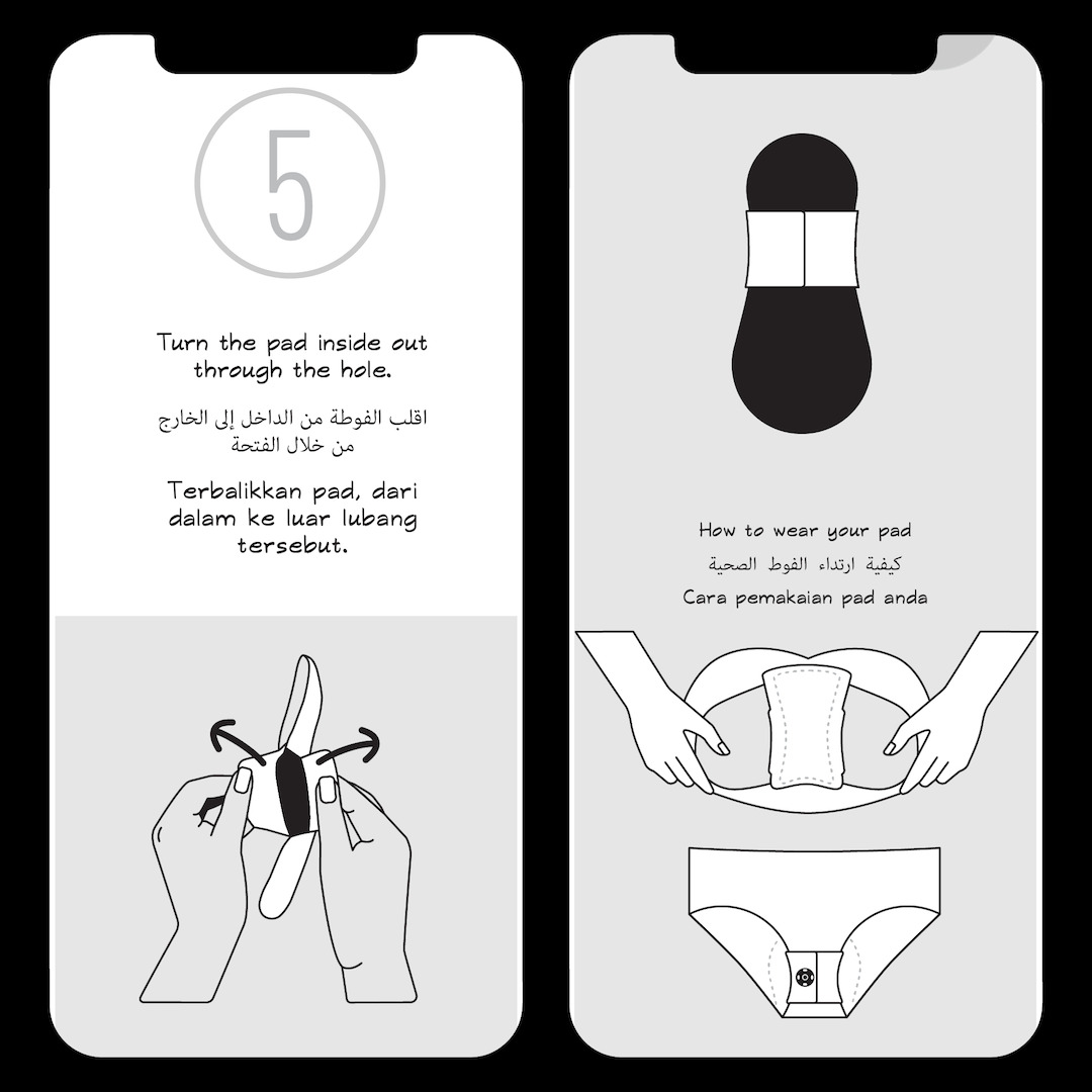 Thanks to our collaboration with The Design School students at Taylor's University, easy instructional guides have been created which allows almost anyone to make their own reusable pad even in the comforts of their own home. We've even translated it into several languages. Click the links below to download: