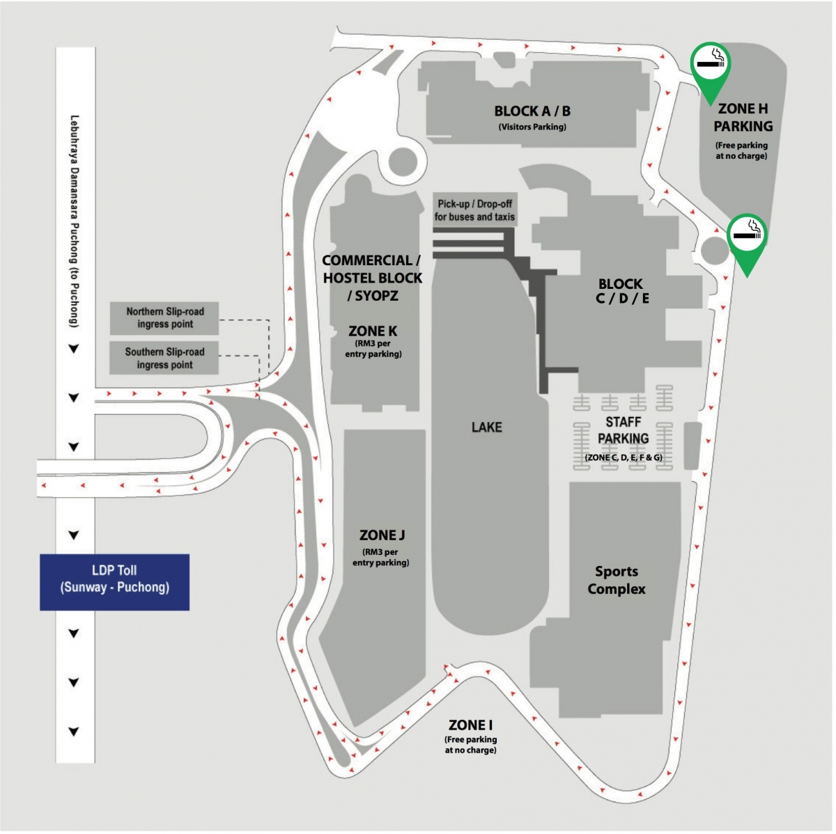 - Smoking zones within the campus have been redesignated.