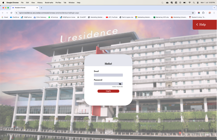 Please reach out to us via WhatsApp at +6012 511 7432 OR +6012 511 7942 or email at taylorshostel@taylors.edu.my if you are unable to log-in.